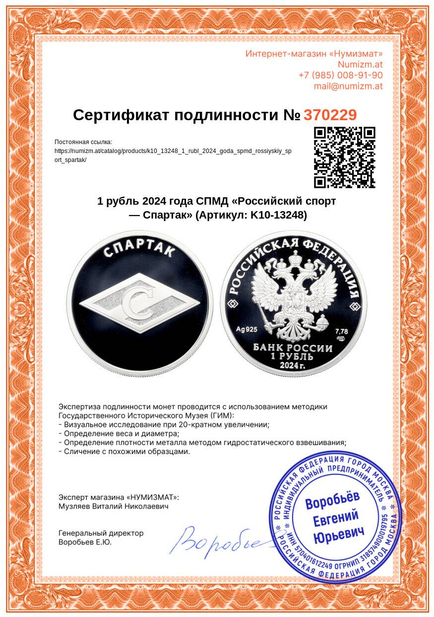Интернет магазин «Нумизмат» предлагает приобрести 1 рубль 2024 года СПМД «Российский спорт — Спартак».
