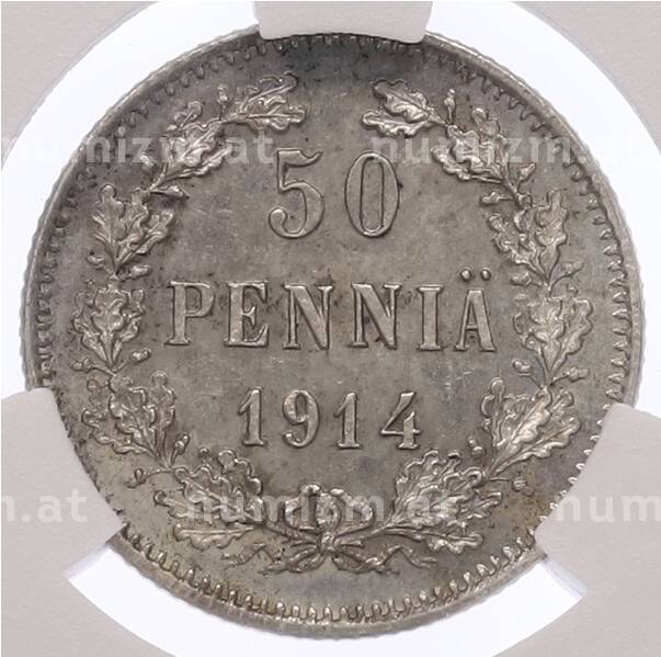 20.01.2025Интернет магазин «Нумизмат» предлагает приобрести 50 пенни 1914 года Русская Финляндия — в слабе CPRC (MS65).