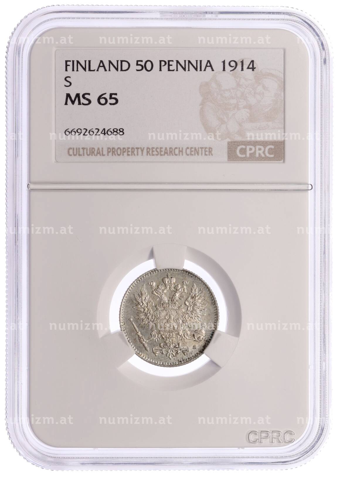 Купить 50 пенни 1914 года Русская Финляндия — в слабе CPRC (MS65) по привлекательной цене можно в нашем интернет-магазине — Вам достаточно оформить заказ на сайте. Все монеты, представленные в каталоге, находятся в наличии на нашем складе.
