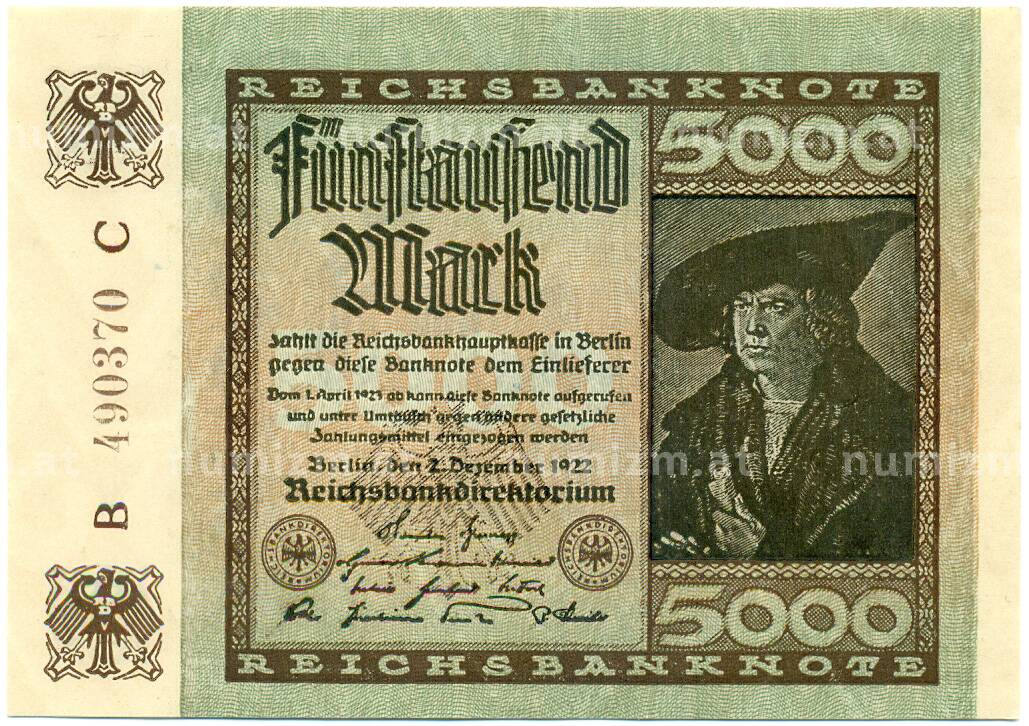 Интернет магазин «Нумизмат» предлагает приобрести 5000 марок 1922 года Германия.