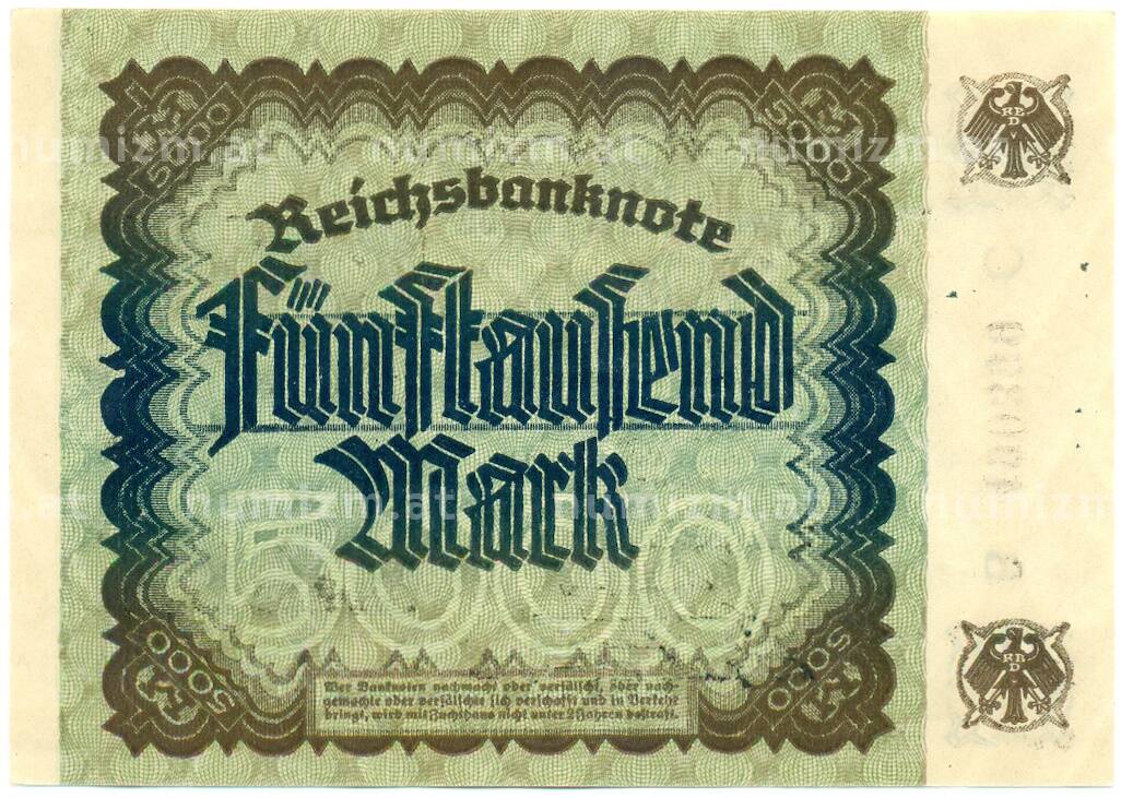 Банкнота 5000 марок 1922 года Германия (Артикул: K10-13459): подробные характеристики, качественные фотографии в высоком разрешении, низкая цена.