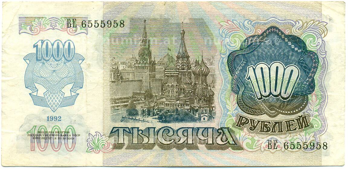 Банкнота 1000 рублей 1992 года (Артикул: K10-13518): подробные характеристики, качественные фотографии в высоком разрешении, низкая цена.