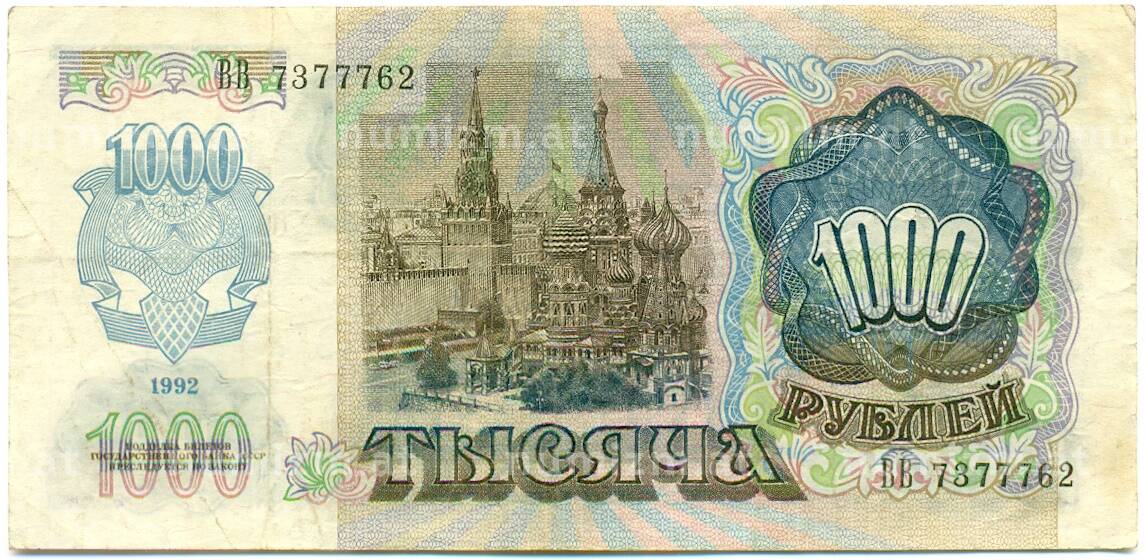 Банкнота 1000 рублей 1992 года (Артикул: K10-13519): подробные характеристики, качественные фотографии в высоком разрешении, низкая цена.