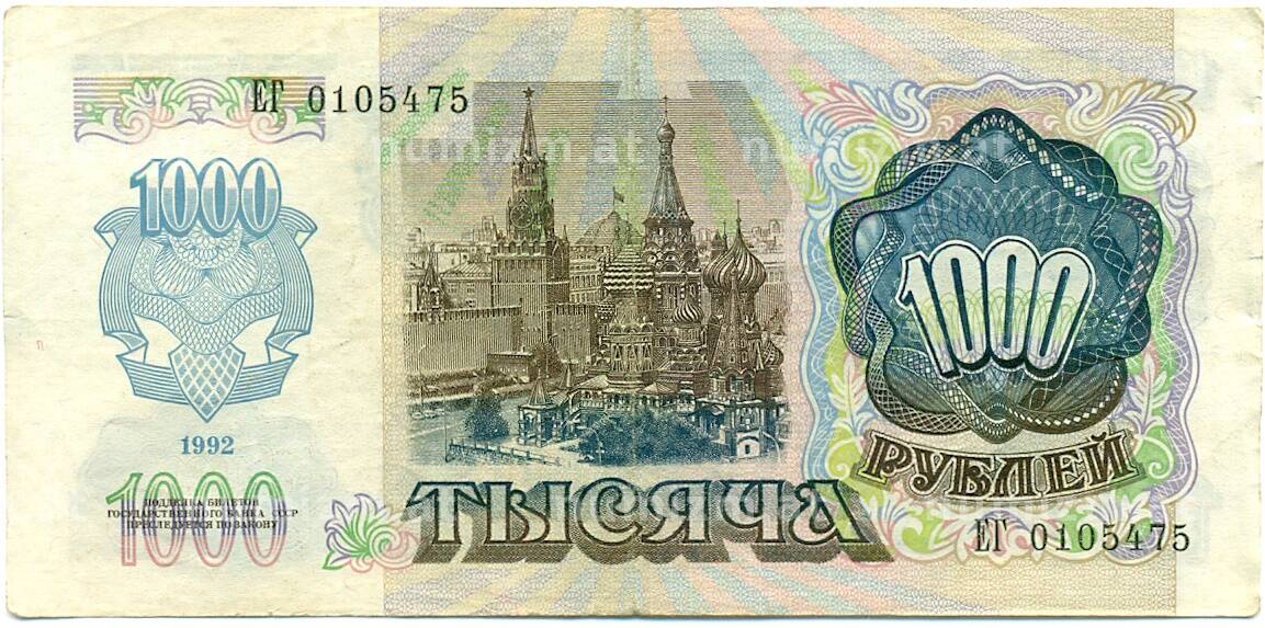 Банкнота 1000 рублей 1992 года (Артикул: K10-13521): подробные характеристики, качественные фотографии в высоком разрешении, низкая цена.