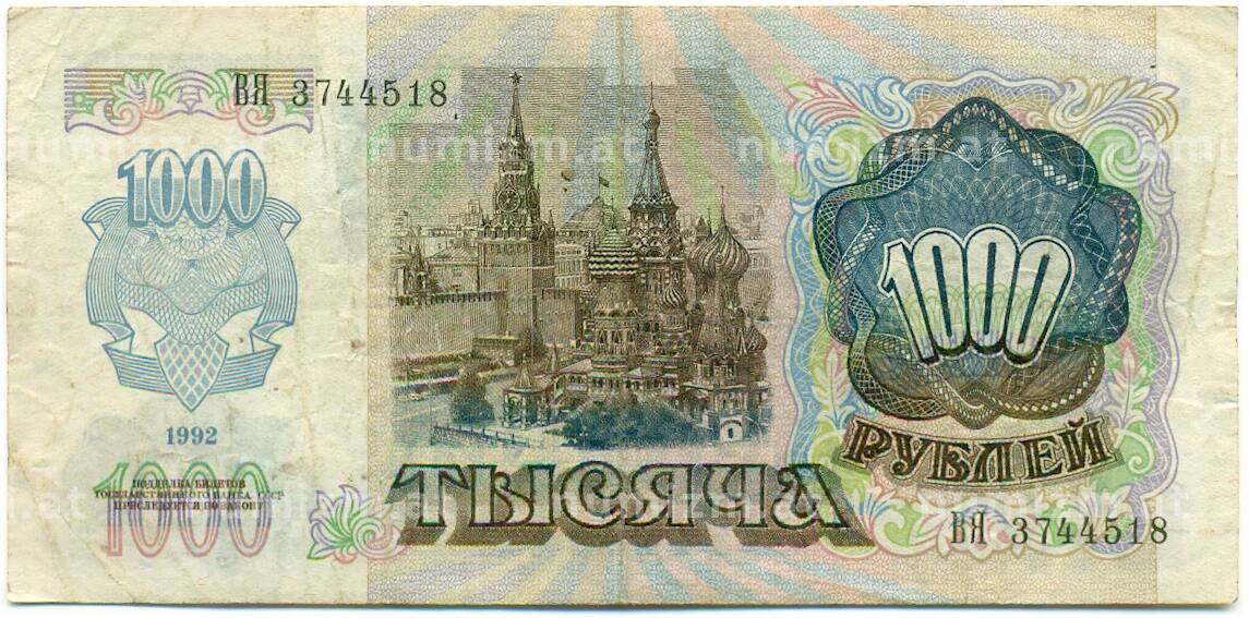 Банкнота 1000 рублей 1992 года (Артикул: K10-13522): подробные характеристики, качественные фотографии в высоком разрешении, низкая цена.