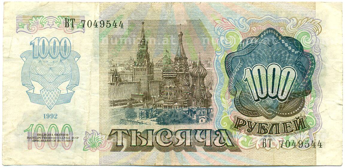 Банкнота 1000 рублей 1992 года (Артикул: K10-13523): подробные характеристики, качественные фотографии в высоком разрешении, низкая цена.