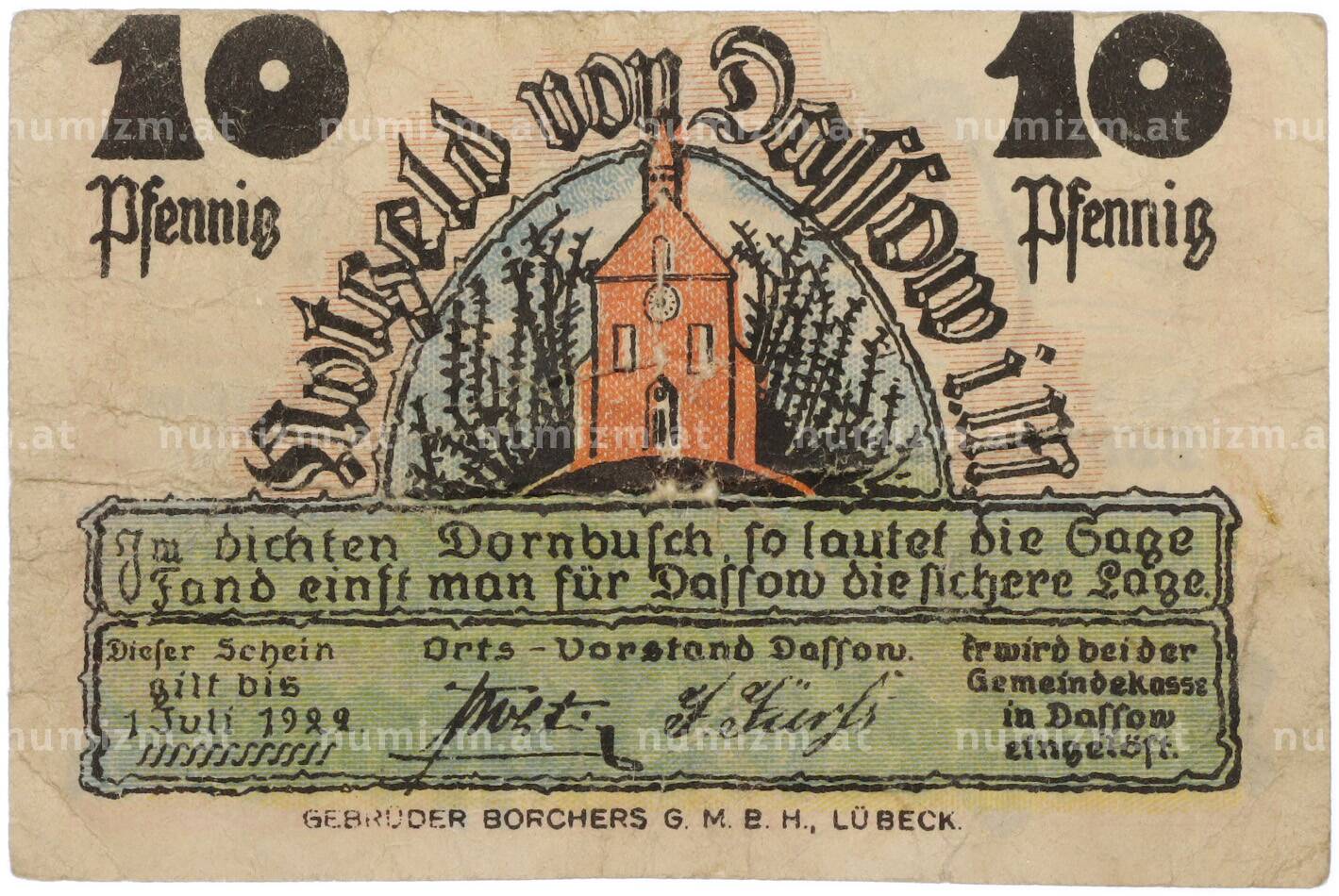 Купить 10 пфеннигов 1922 года Германия — община Дассов (Нотгельд) по привлекательной цене можно в нашем интернет-магазине — Вам достаточно оформить заказ на сайте. Все монеты, представленные в каталоге, находятся в наличии на нашем складе.