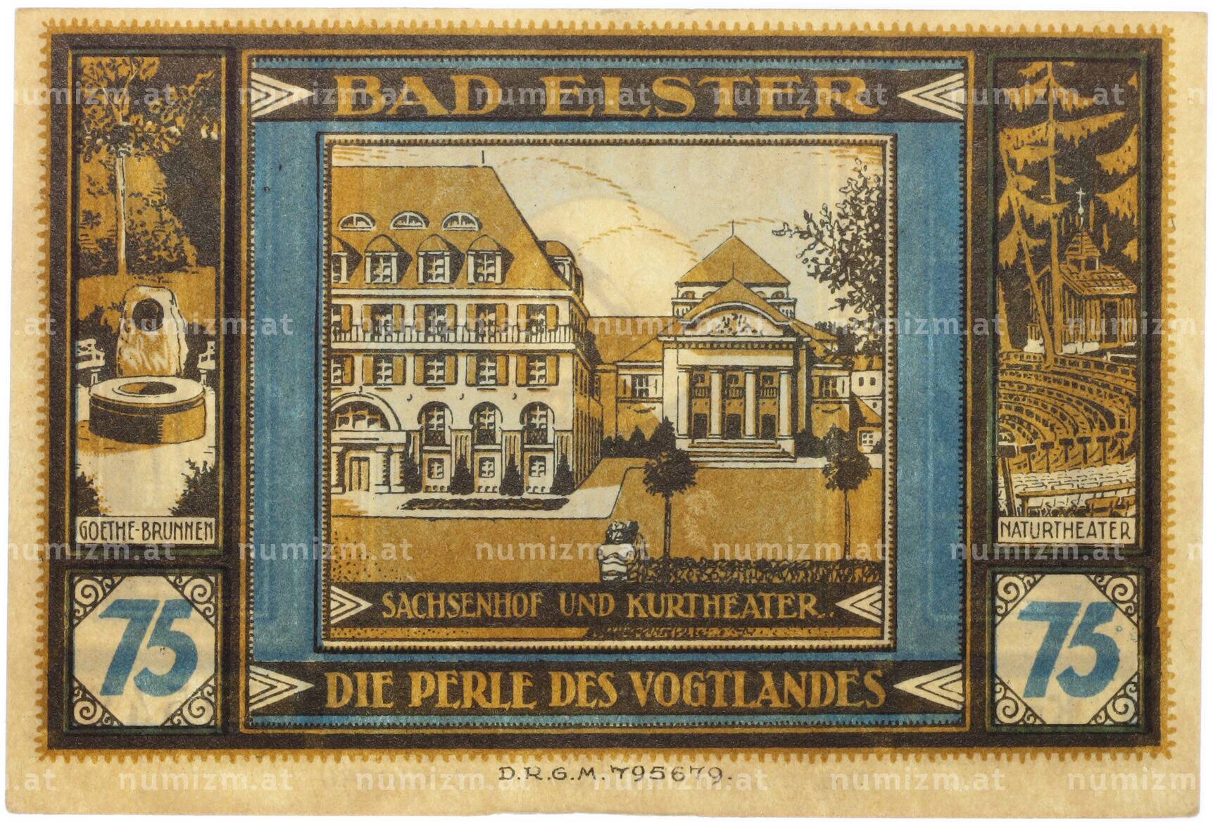 Интернет магазин «Нумизмат» предлагает приобрести 75 пфеннигов 1922 года Германия — муниципалитет Бад-Эльстер (Нотгельд).