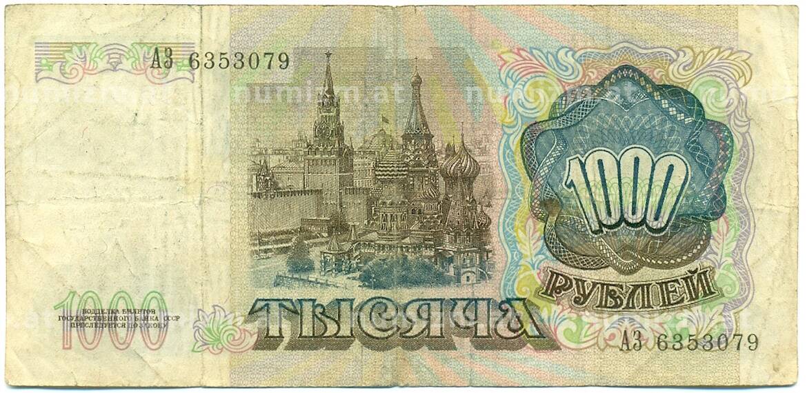 • Банкнота 1000 рублей 1991 года (Артикул: K10-1428) — Фото №1 Банкнота 1000 рублей 1991 года (Артикул: K10-1428) — Фото №2
