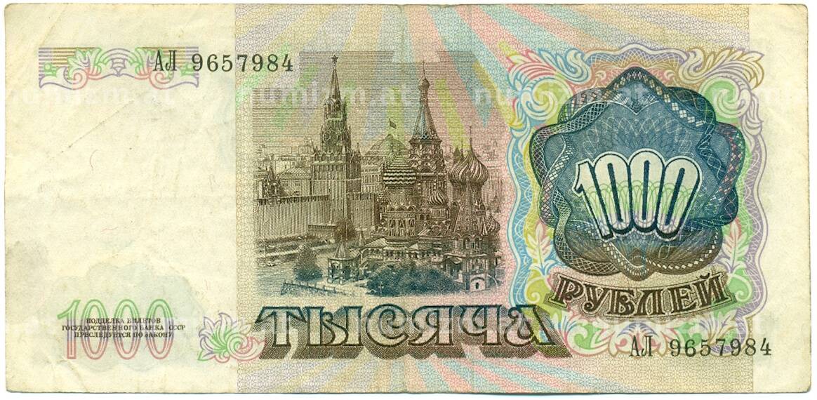 • Банкнота 1000 рублей 1991 года (Артикул: K10-1436) — Фото №1 Банкнота 1000 рублей 1991 года (Артикул: K10-1436) — Фото №2