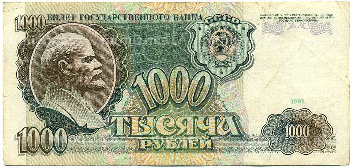 Интернет магазин «Нумизмат» предлагает приобрести 1000 рублей 1991 года.
