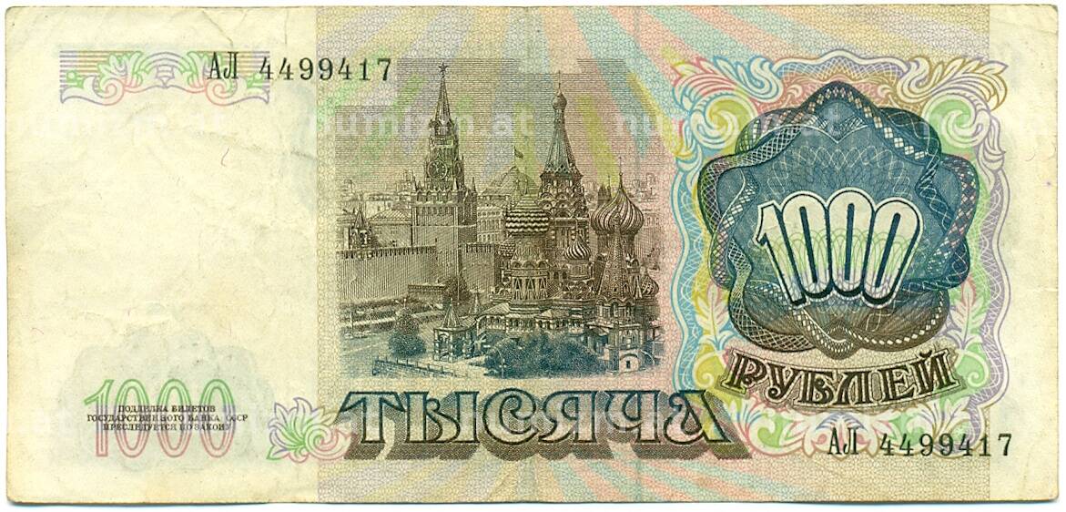 • Банкнота 1000 рублей 1991 года (Артикул: K10-1437) — Фото №1 Банкнота 1000 рублей 1991 года (Артикул: K10-1437) — Фото №2