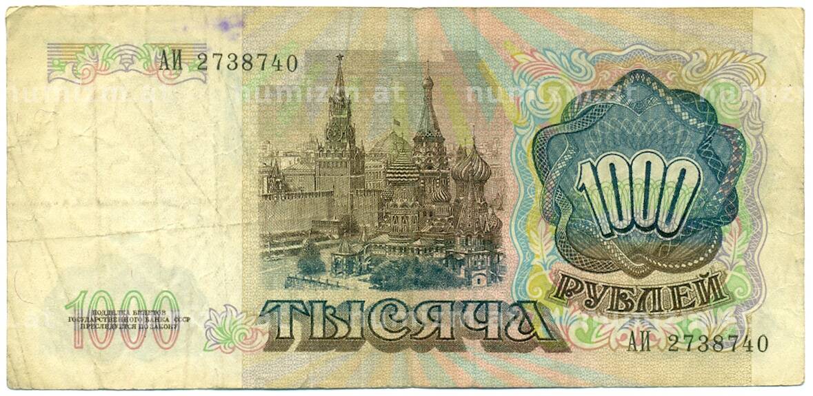 • Банкнота 1000 рублей 1991 года (Артикул: K10-1439) — Фото №1 Банкнота 1000 рублей 1991 года (Артикул: K10-1439) — Фото №2