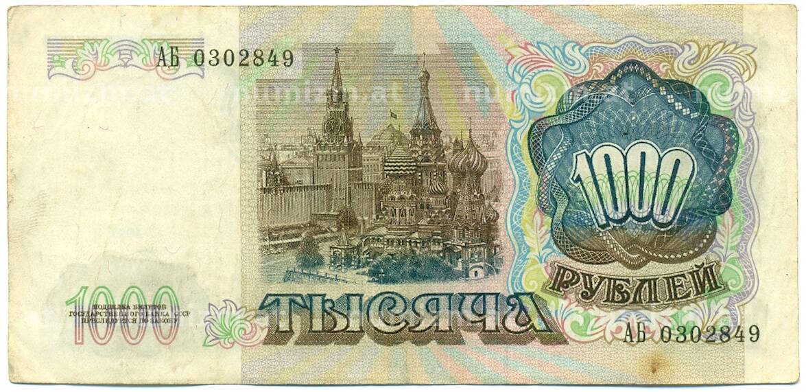 • Банкнота 1000 рублей 1991 года (Артикул: K10-1441) — Фото №1 Банкнота 1000 рублей 1991 года (Артикул: K10-1441) — Фото №2