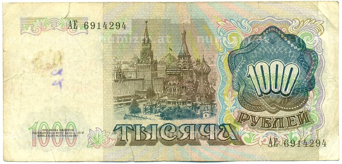 • Банкнота 1000 рублей 1991 года (Артикул: K10-1442) — Фото №1 Банкнота 1000 рублей 1991 года (Артикул: K10-1442) — Фото №2