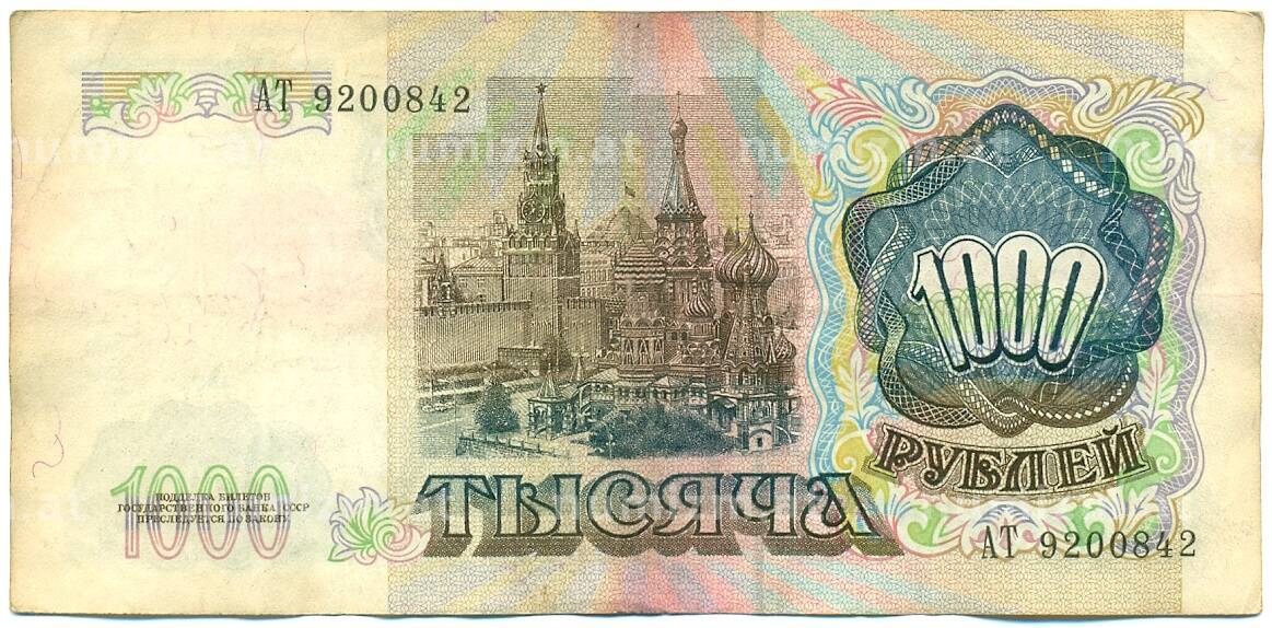 Банкнота 1000 рублей 1991 года (Артикул: K10-1447): подробные характеристики, качественные фотографии в высоком разрешении, низкая цена.