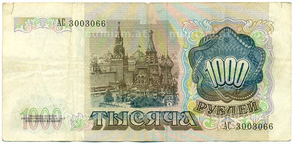 • Банкнота 1000 рублей 1991 года (Артикул: K10-1451) — Фото №1 Банкнота 1000 рублей 1991 года (Артикул: K10-1451) — Фото №2
