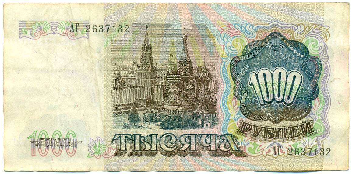 • Банкнота 1000 рублей 1991 года (Артикул: K10-1452) — Фото №1 Банкнота 1000 рублей 1991 года (Артикул: K10-1452) — Фото №2
