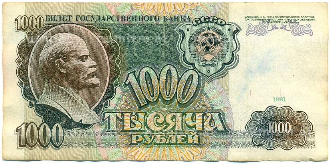 Интернет магазин «Нумизмат» предлагает приобрести 1000 рублей 1991 года.