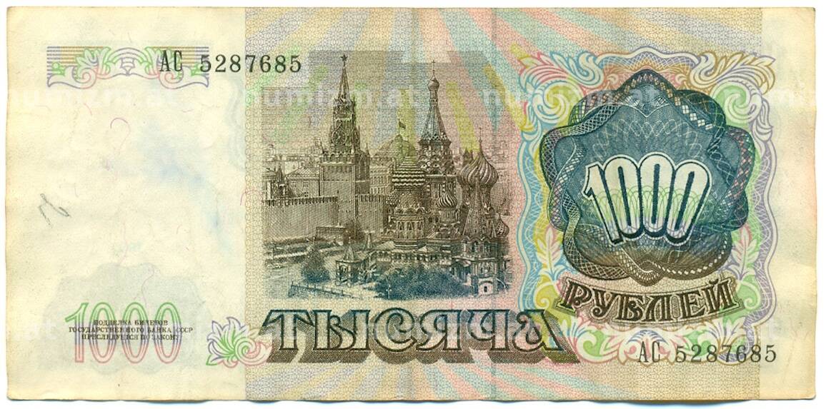 Банкнота 1000 рублей 1991 года (Артикул: K10-1453): подробные характеристики, качественные фотографии в высоком разрешении, низкая цена.