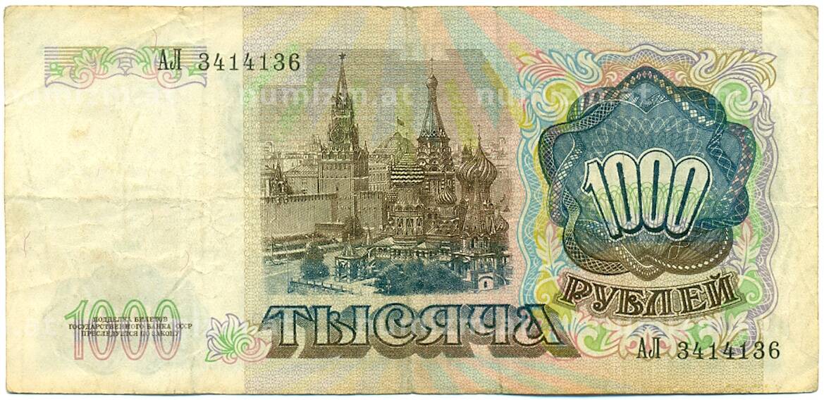 • Банкнота 1000 рублей 1991 года (Артикул: K10-1461) — Фото №1 Банкнота 1000 рублей 1991 года (Артикул: K10-1461) — Фото №2