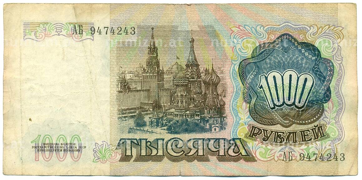 • Банкнота 1000 рублей 1991 года (Артикул: K10-1490) — Фото №1 Банкнота 1000 рублей 1991 года (Артикул: K10-1490) — Фото №2