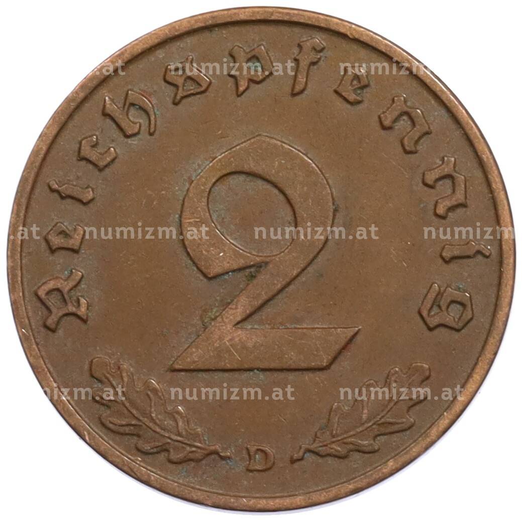 Монета 2 рейхспфеннига 1937 года D Германия (Артикул: K10-1622): подробные характеристики, качественные фотографии в высоком разрешении, низкая цена.