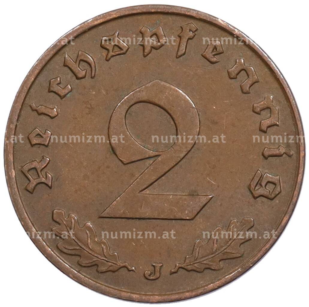 Монета 2 рейхспфеннига 1939 года J Германия (Артикул: K10-1629): подробные характеристики, качественные фотографии в высоком разрешении, низкая цена.