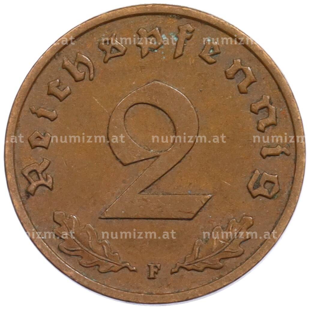 Монета 2 рейхспфеннига 1938 года F Германия (Артикул: K10-1666): подробные характеристики, качественные фотографии в высоком разрешении, низкая цена.