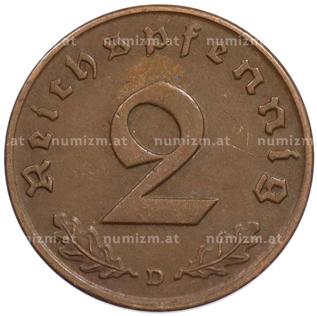 Монета 2 рейхспфеннига 1937 года D Германия (Артикул: K10-1676): подробные характеристики, качественные фотографии в высоком разрешении, низкая цена.