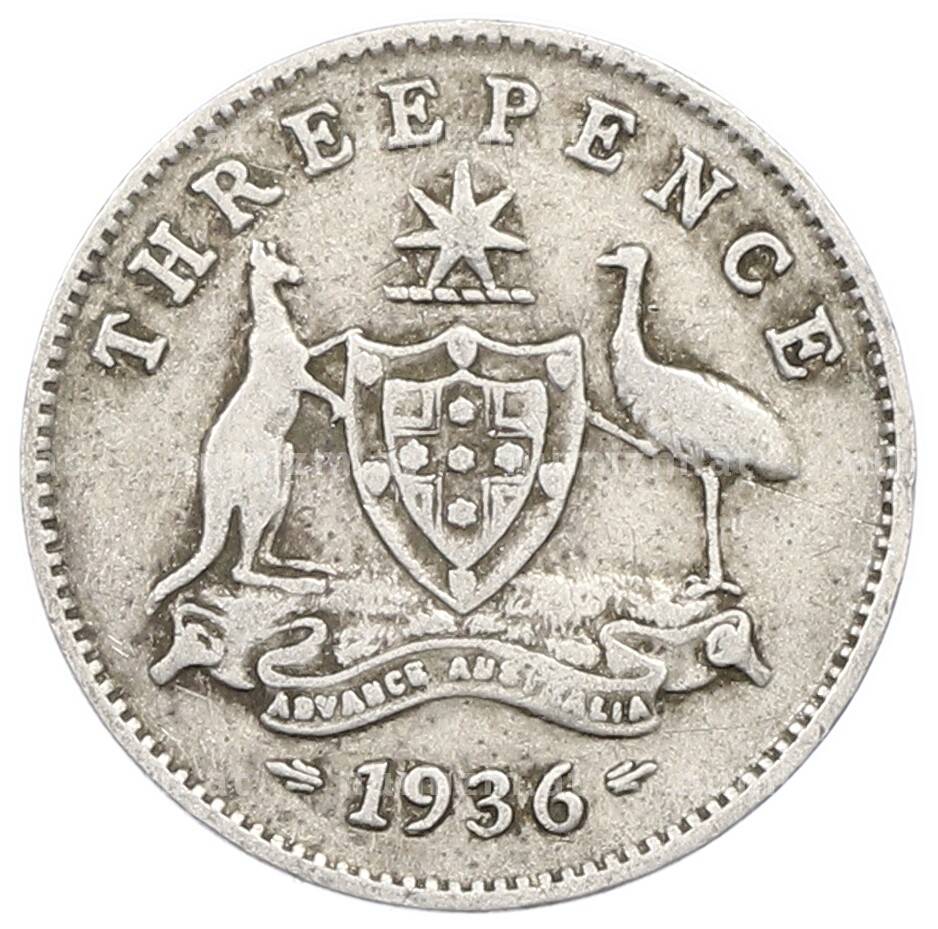 Монета 3 пенса 1936 года Австралия (Артикул: K10-1830): подробные характеристики, качественные фотографии в высоком разрешении, низкая цена.
