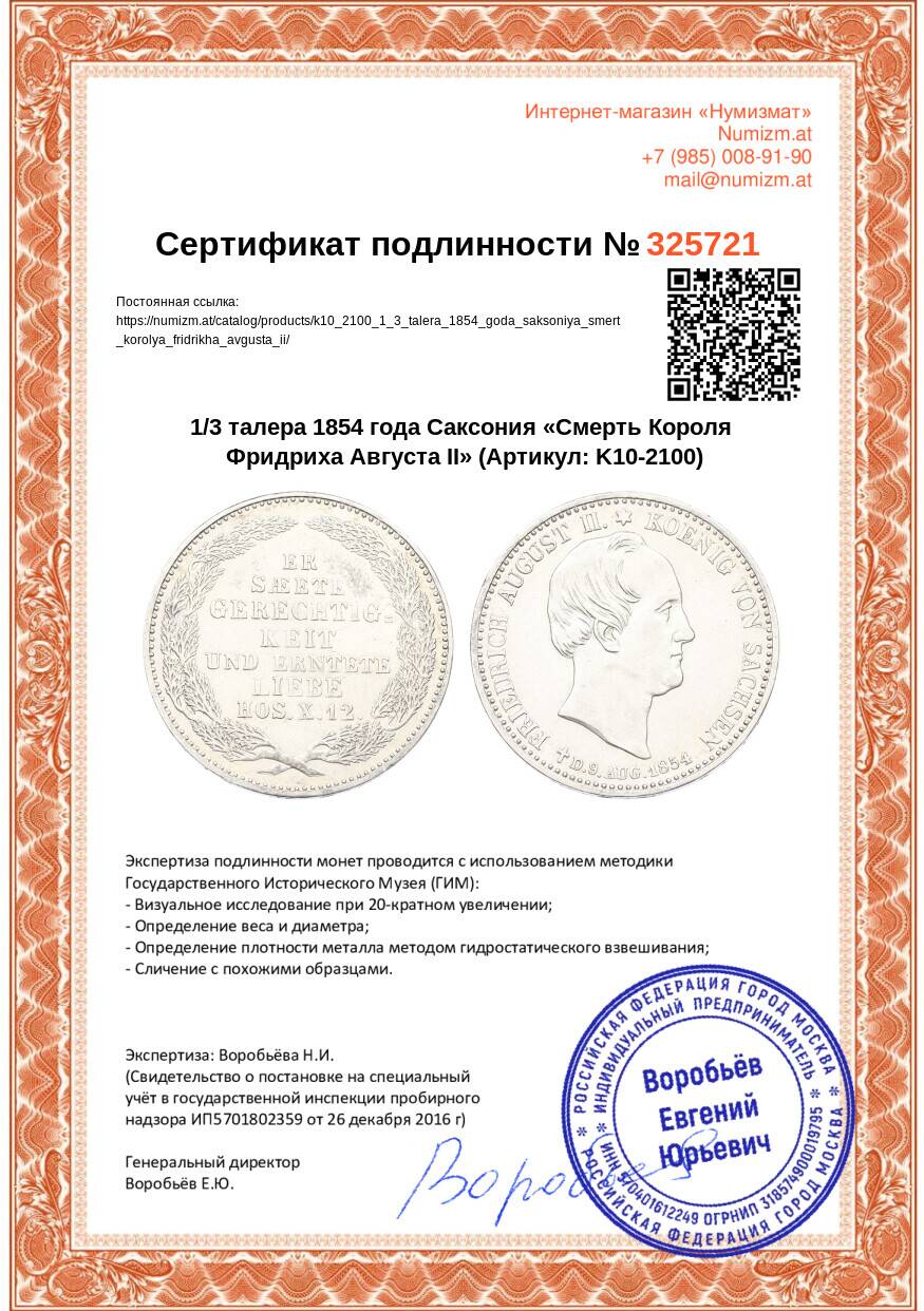 Купить 1/3 талера 1854 года Саксония «Смерть Короля Фридриха Августа II» по привлекательной цене можно в нашем интернет-магазине — Вам достаточно оформить заказ на сайте. Все монеты, представленные в каталоге, находятся в наличии на нашем складе.