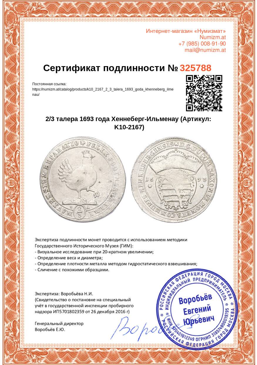 Купить 2/3 талера 1693 года Хеннеберг-Ильменау по привлекательной цене можно в нашем интернет-магазине — Вам достаточно оформить заказ на сайте. Все монеты, представленные в каталоге, находятся в наличии на нашем складе.