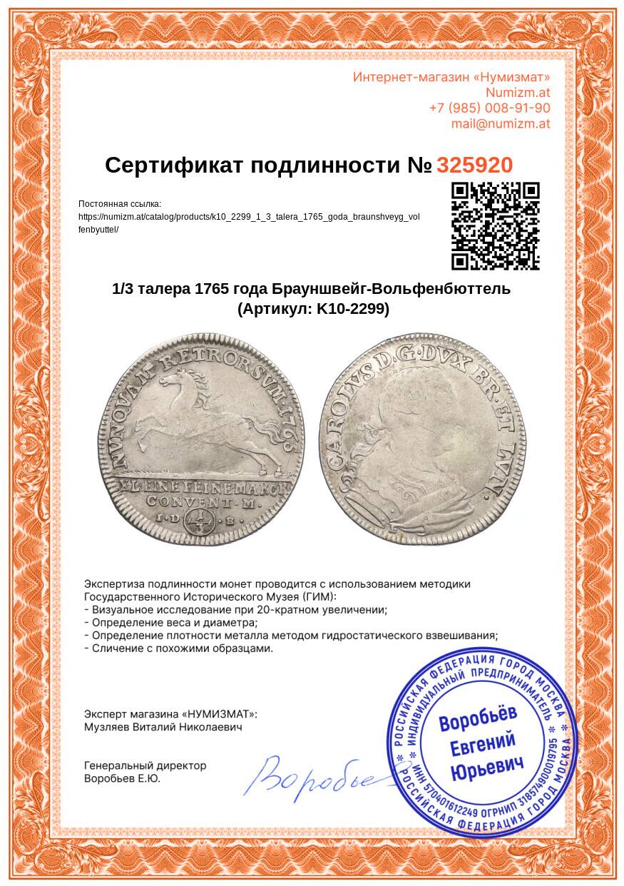 Купить 1/3 талера 1765 года Брауншвейг-Вольфенбюттель по привлекательной цене можно в нашем интернет-магазине — Вам достаточно оформить заказ на сайте. Все монеты, представленные в каталоге, находятся в наличии на нашем складе.