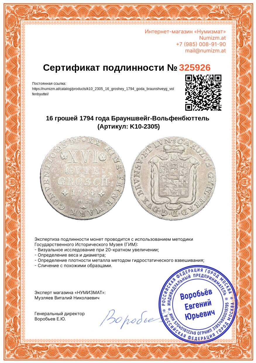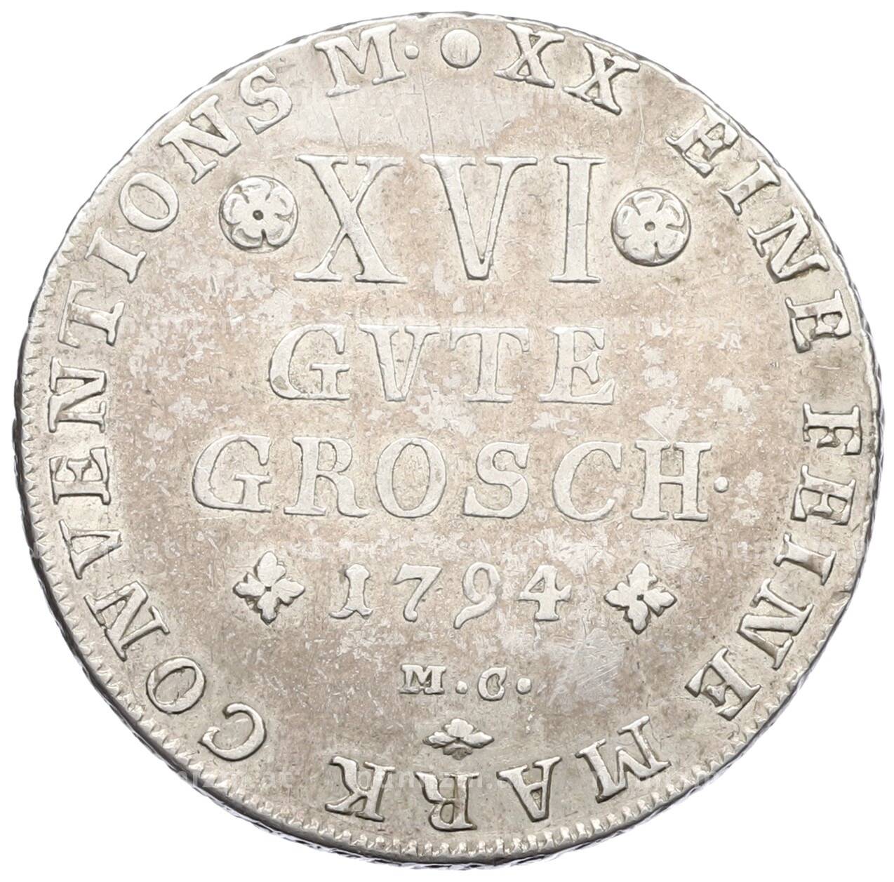 Купить 16 грошей 1794 года Брауншвейг-Вольфенбюттель по привлекательной цене можно в нашем интернет-магазине — Вам достаточно оформить заказ на сайте. Все монеты, представленные в каталоге, находятся в наличии на нашем складе.