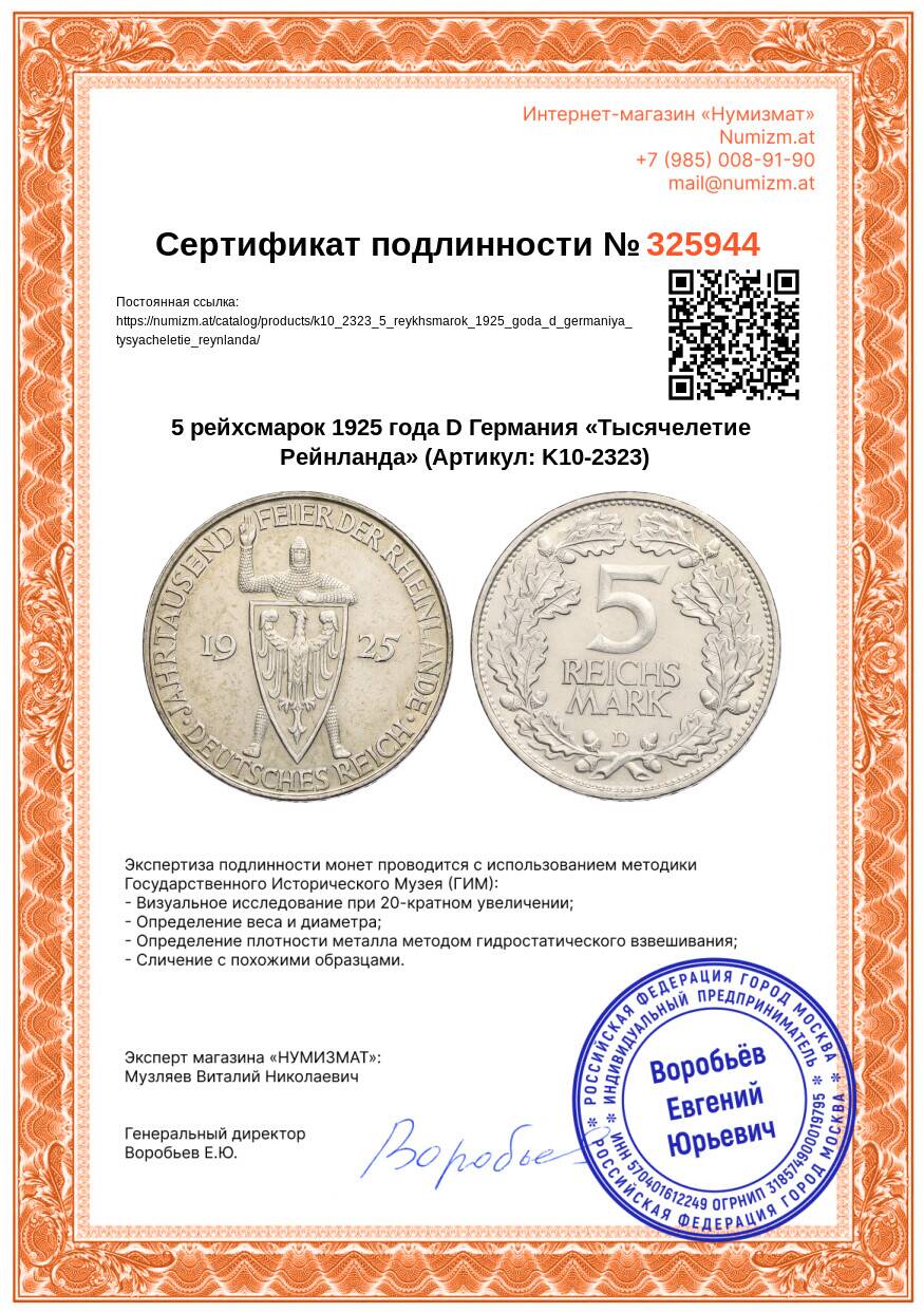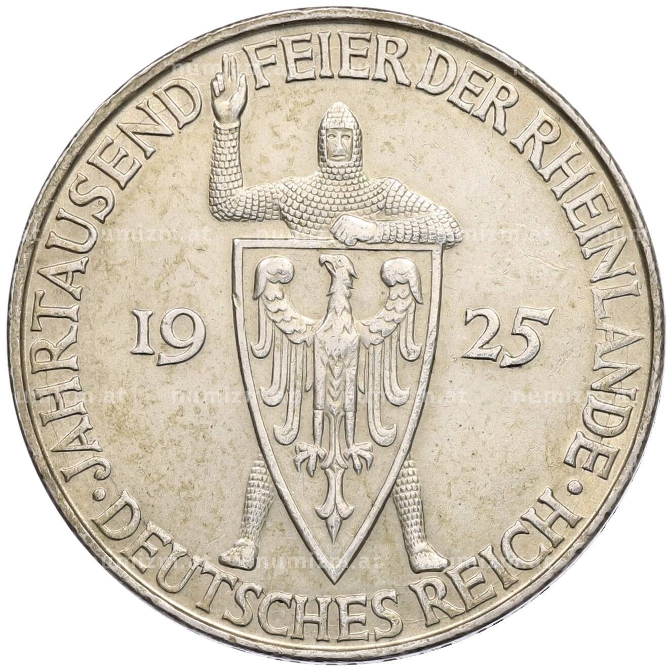 20.01.2025Интернет магазин «Нумизмат» предлагает приобрести 5 рейхсмарок 1925 года D Германия «Тысячелетие Рейнланда».