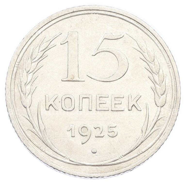Монета 15 копеек 1925 года (Артикул: K10-2438): подробные характеристики, качественные фотографии в высоком разрешении, низкая цена.