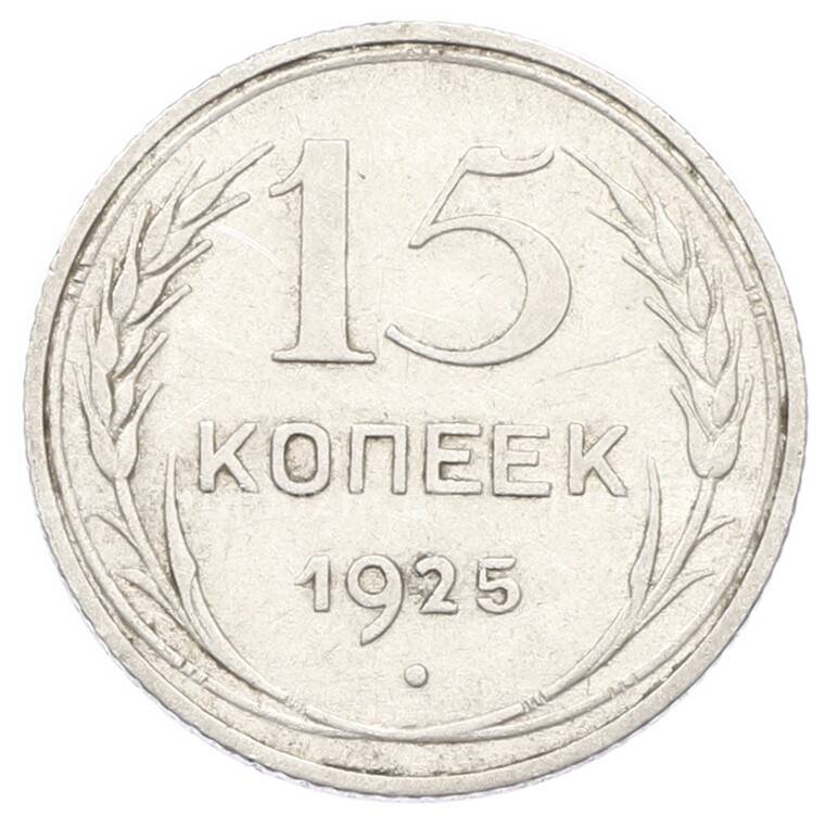 Монета 15 копеек 1925 года (Артикул: K10-2442): подробные характеристики, качественные фотографии в высоком разрешении, низкая цена.