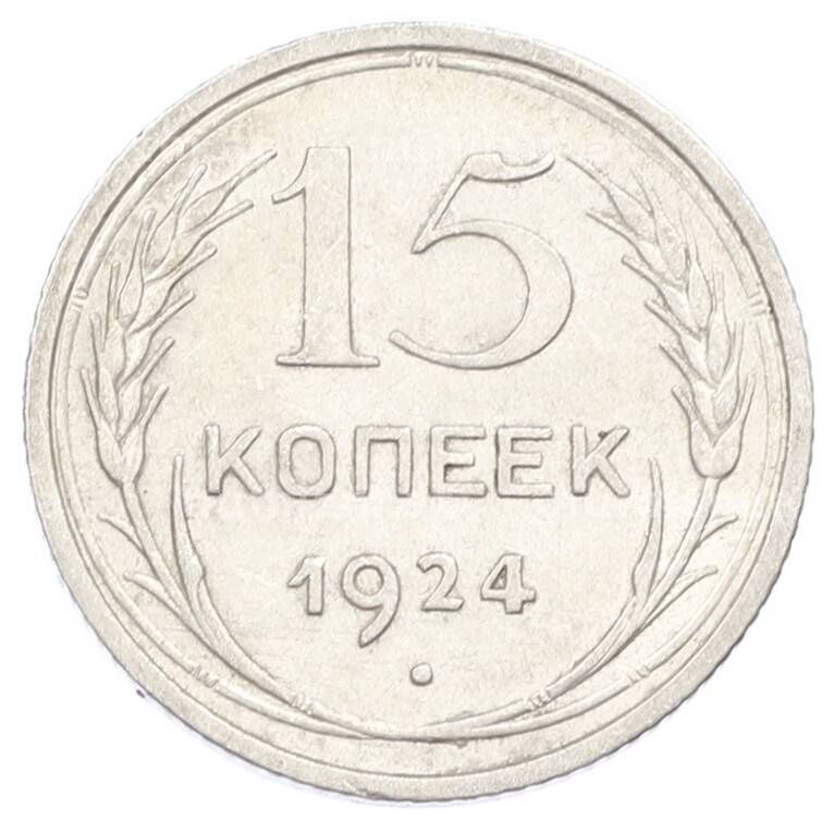 Монета 15 копеек 1924 года (Артикул: K10-2445): подробные характеристики, качественные фотографии в высоком разрешении, низкая цена.