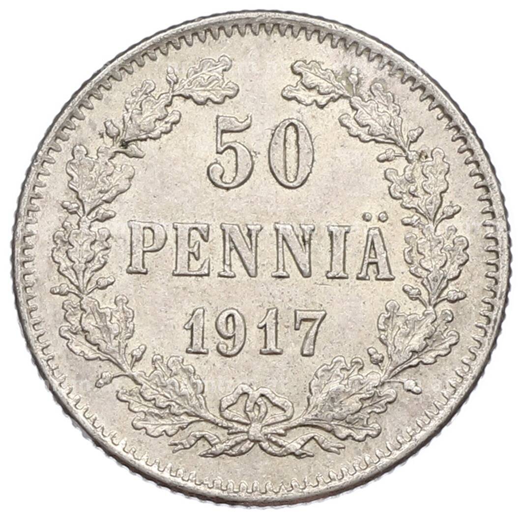 Монета 50 пенни 1917 года Русская Финляндия — Орел без корон (Временное правительство) [Артикул: K10-2566]