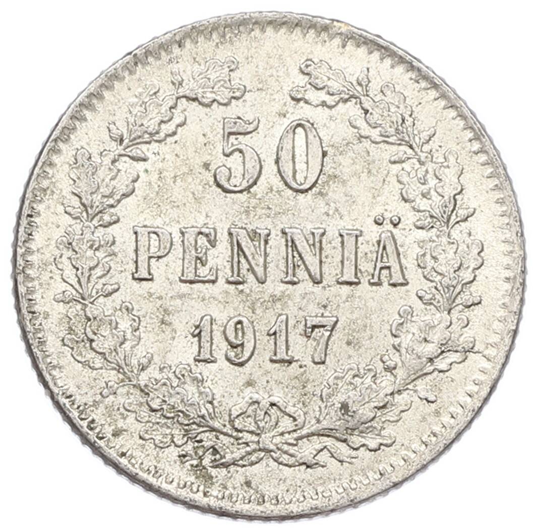 Монета 50 пенни 1917 года Русская Финляндия — Орел без корон (Временное правительство) [Артикул: K10-2573]