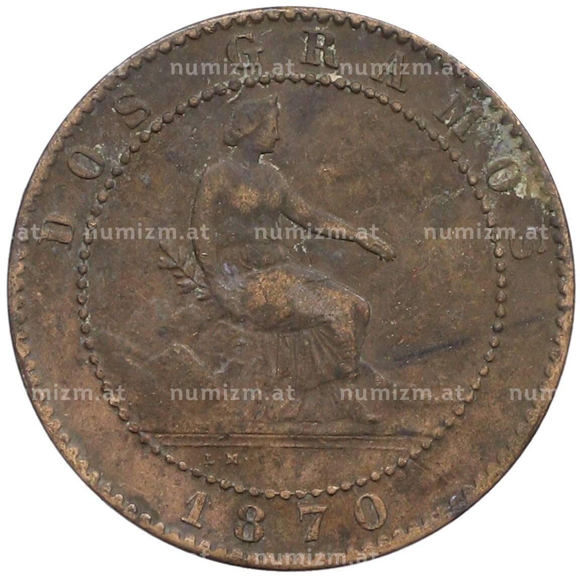 Монета 2 сентимо 1870 года Испания [Артикул: K10-2594]
