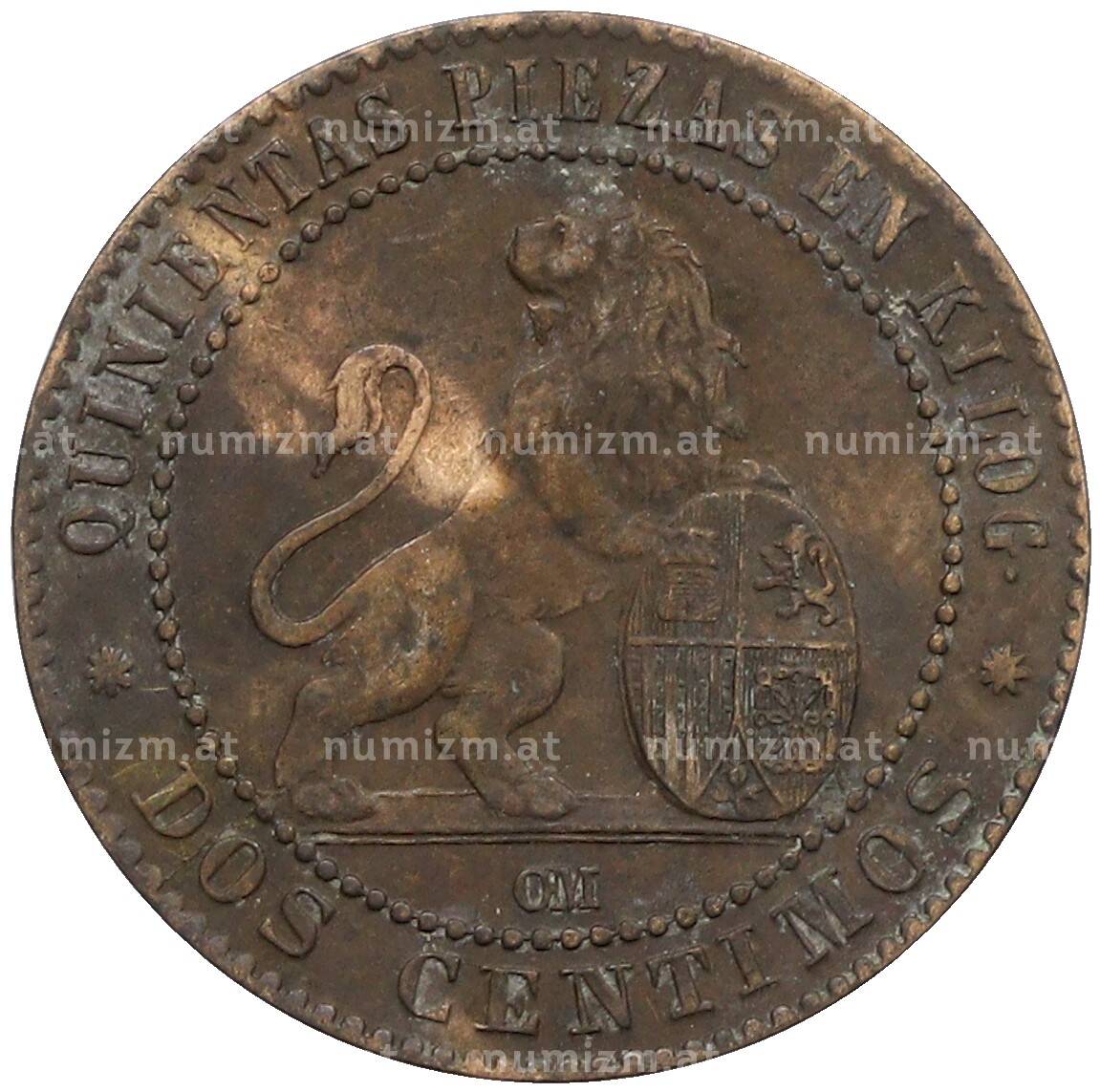 Интернет магазин «Нумизмат» предлагает приобрести 2 сентимо 1870 года Испания.