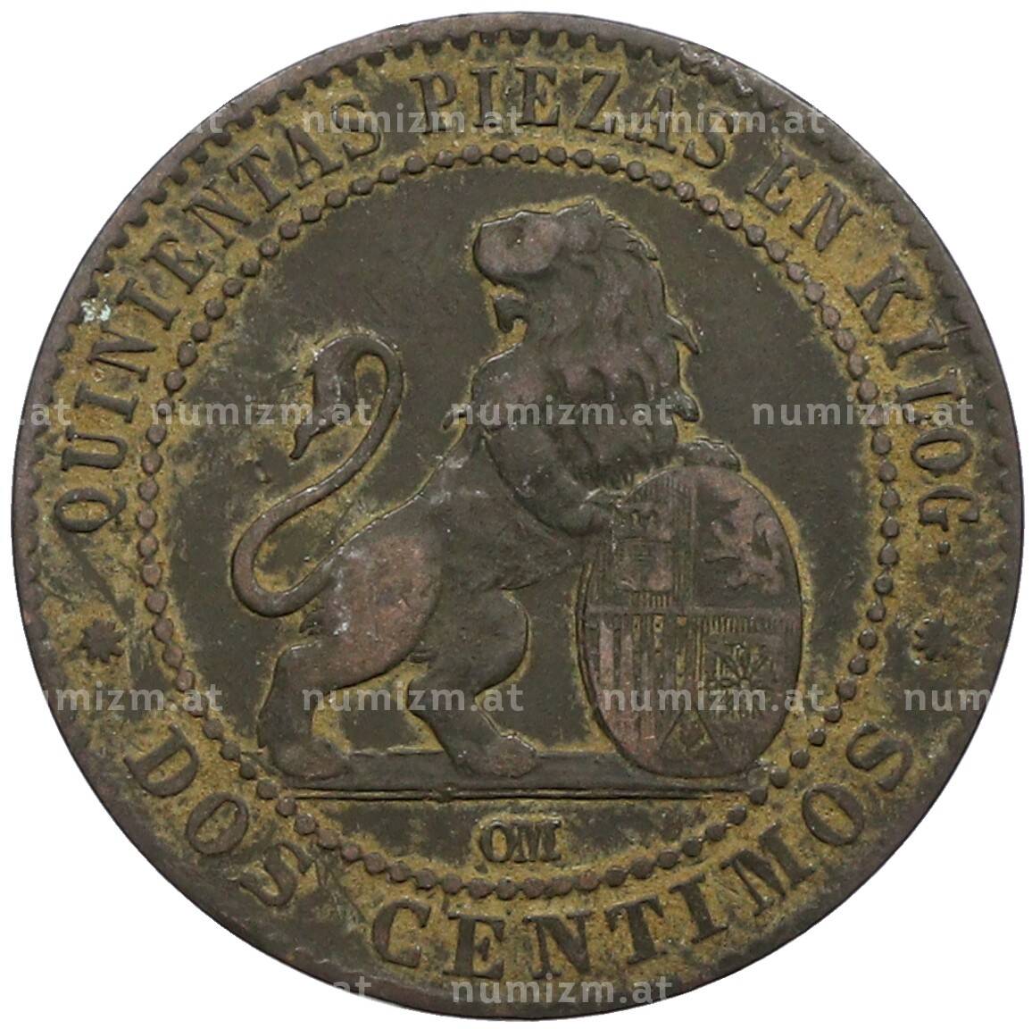 Интернет магазин «Нумизмат» предлагает приобрести 2 сентимо 1870 года Испания.