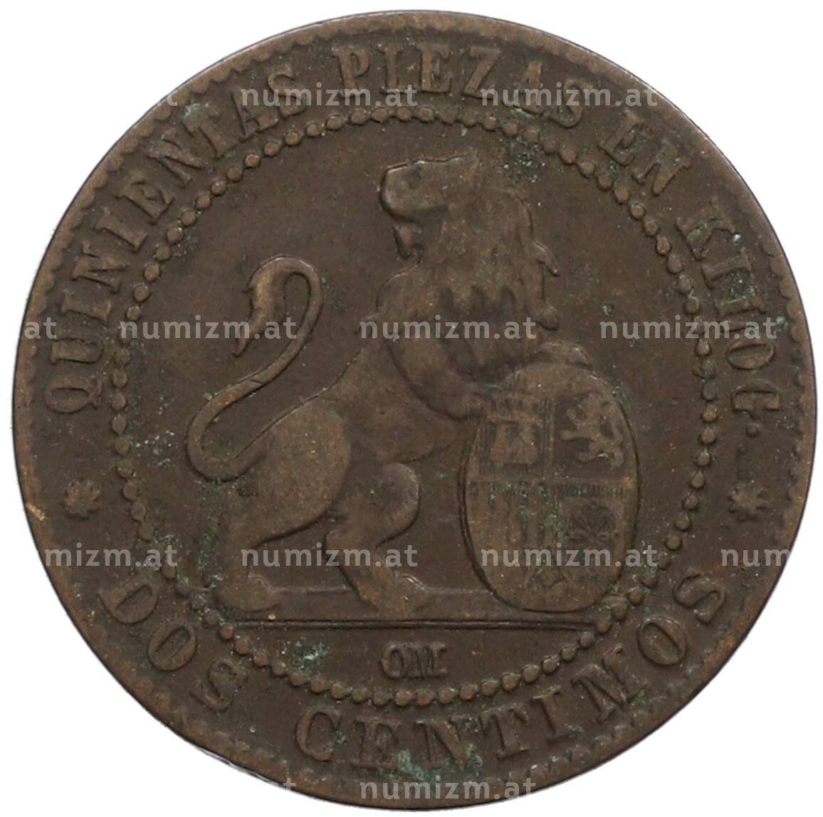 Интернет магазин «Нумизмат» предлагает приобрести 2 сентимо 1870 года Испания.