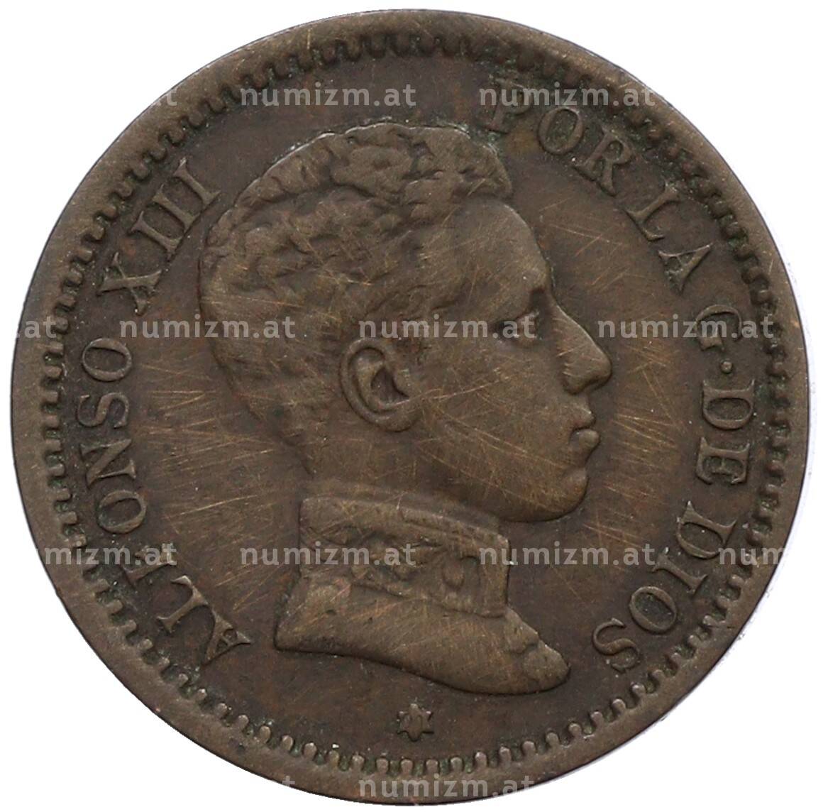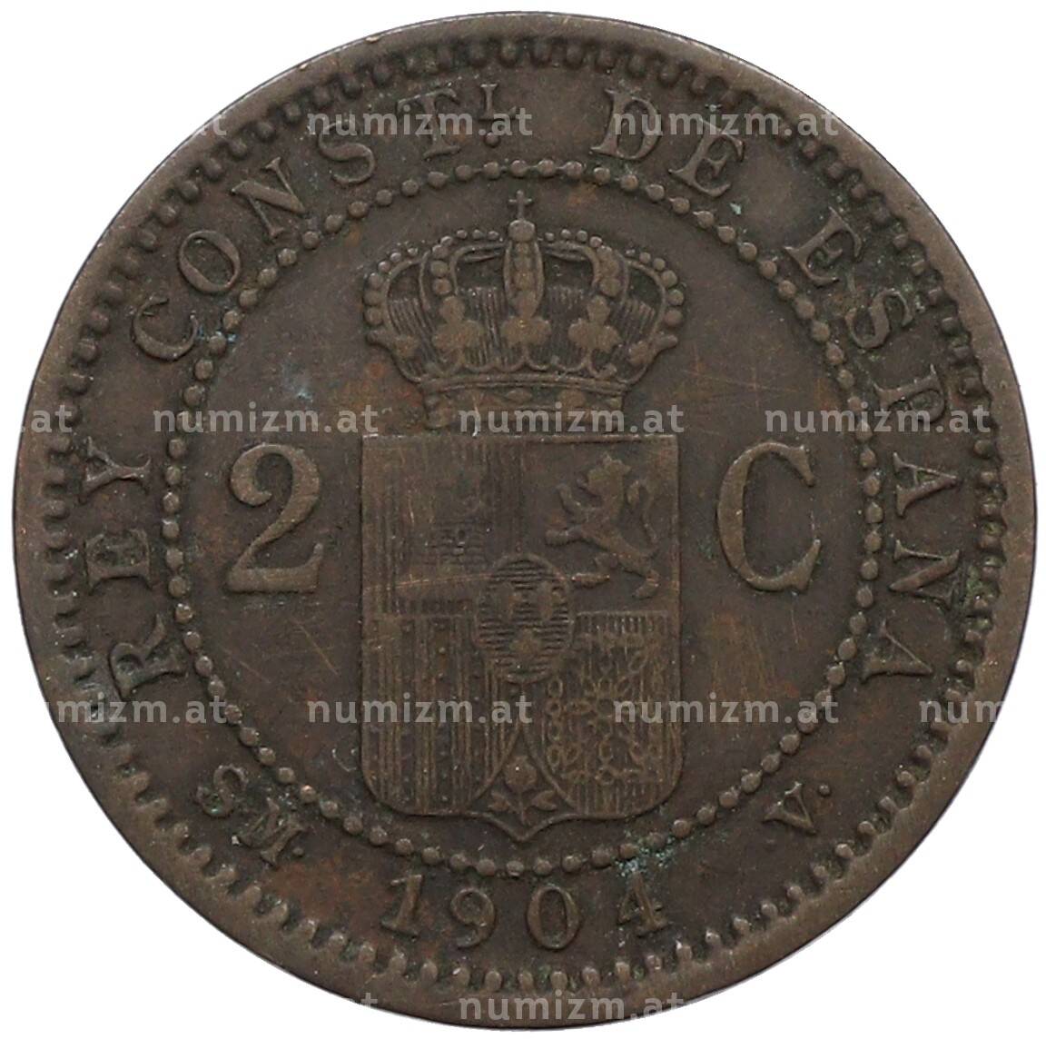 Интернет магазин «Нумизмат» предлагает приобрести 2 сентимо 1904 года Испания.