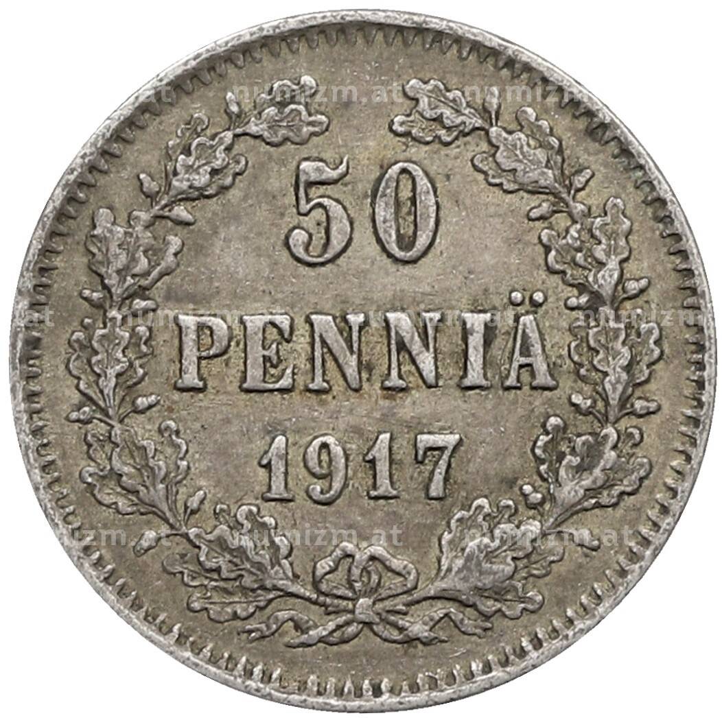 Интернет магазин «Нумизмат» предлагает приобрести 50 пенни 1917 года Русская Финляндия — Орел без корон (Временное правительство).