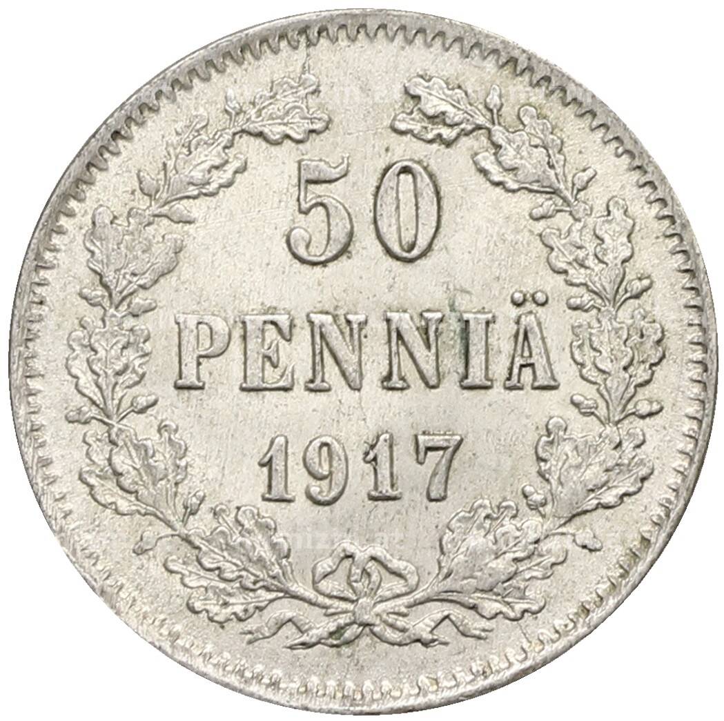 Интернет магазин «Нумизмат» предлагает приобрести 50 пенни 1917 года Русская Финляндия — Орел без корон (Временное правительство).