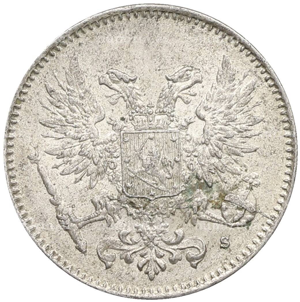 Монета 50 пенни 1917 года Русская Финляндия — Орел без корон (Временное правительство) [Артикул: K10-2653]