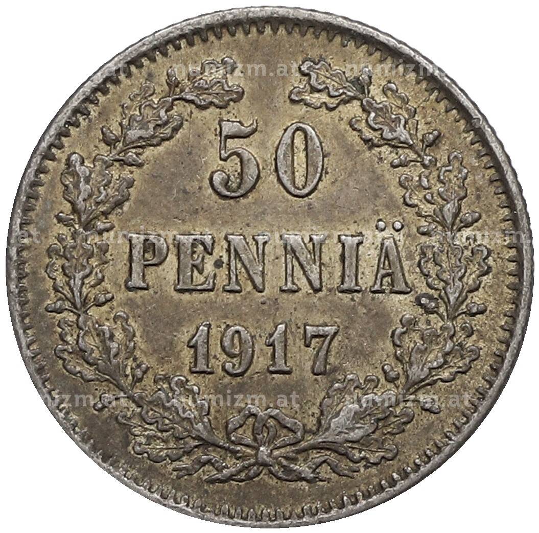 Интернет магазин «Нумизмат» предлагает приобрести 50 пенни 1917 года Русская Финляндия — Орел без корон (Временное правительство).